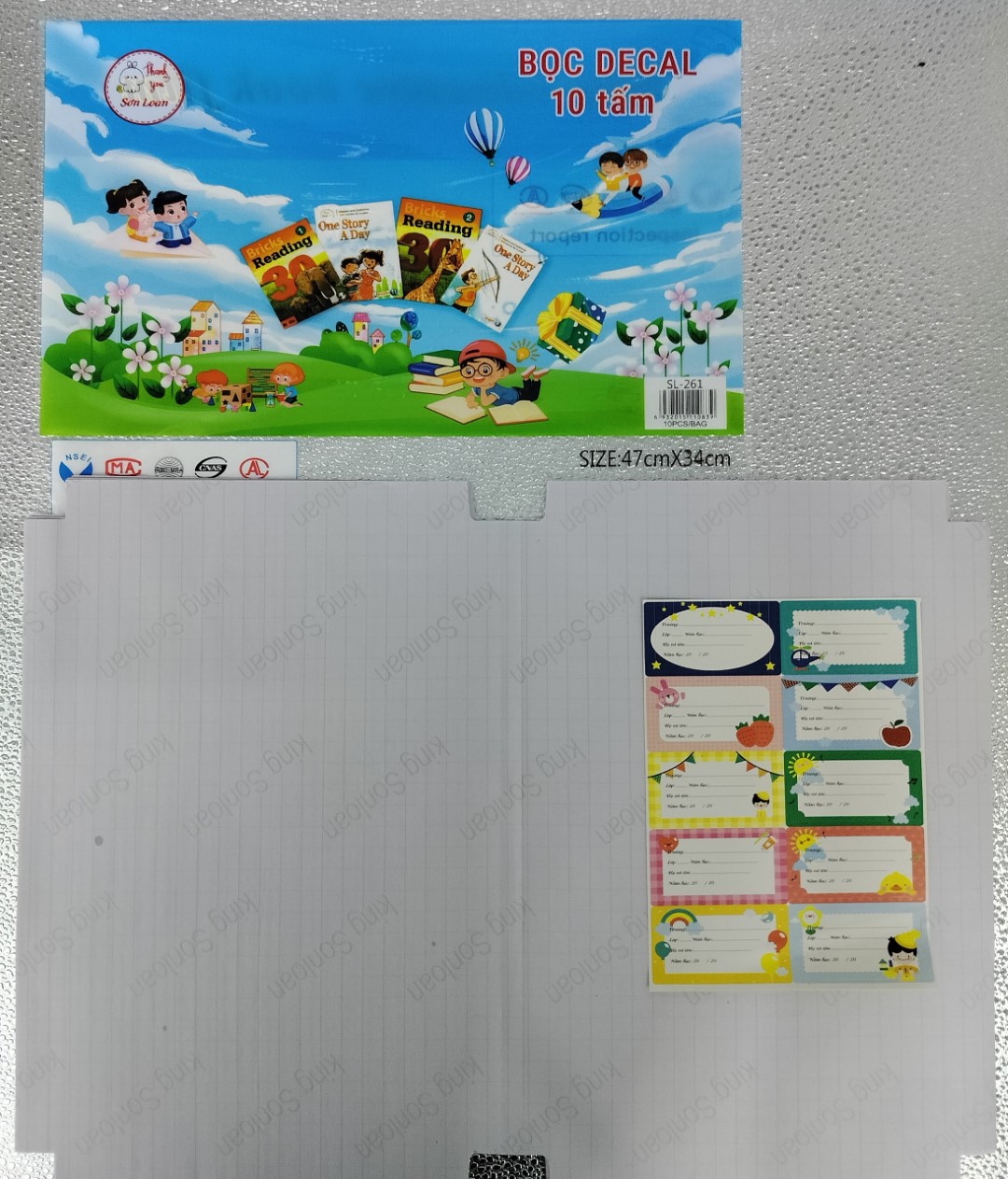 Mỗi size 10 tờ, tặng kèm nhãn dán.