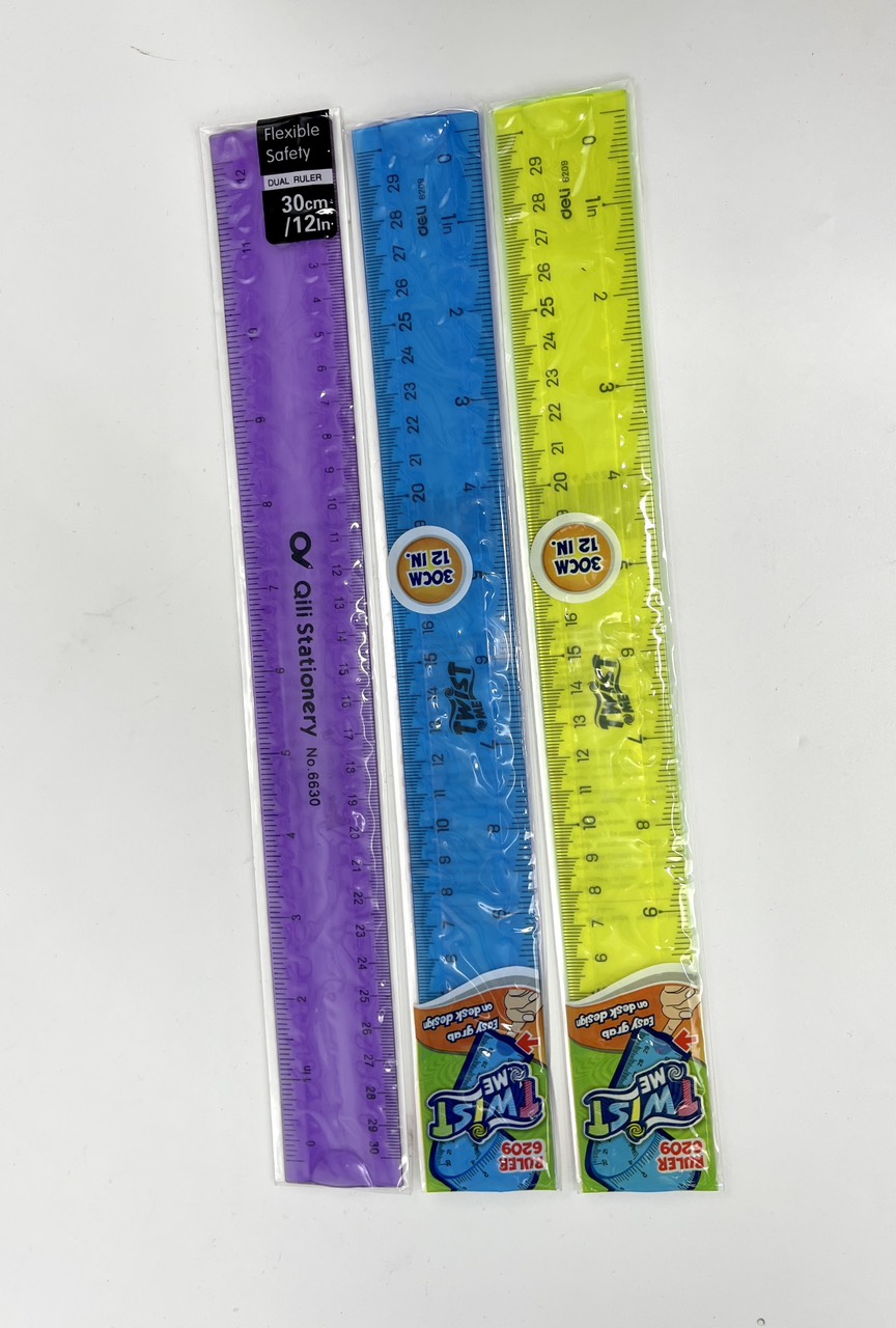 Thước dẻo nhiều màu 30cm là loại thước được giới văn phòng và học sinh lựa chọn bởi tính dẻo dai, đảm bảo độ bền khi sử dụng,không sợ bị rơi vỡ, cấn móp - Chất liệu nhựa dẻo cao cấp, dễ dàng uống cong mà không để lại bất kì vết hằn nào lên thân thước, phục hồi lại hiện trạng ban đầu nhanh chóng - Chiều dài : 30cm, nhưng bởi tính dễ uống cong nên bỏ trong balo, cặp sách học sinh rất dễ dàng - Chất liệu hoàn toàn không chứa hóa chất, không ảnh hưởng đến sức khỏe người sử dụng - Đơn vị đo : Cm, Inh - Xuất xứ : Trung Quốc